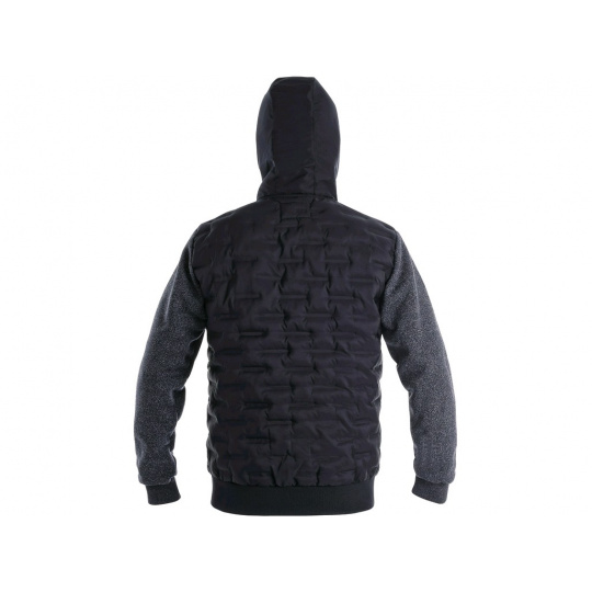 Pánská bunda z pleteniny, teplou podšívkou, kombinace materiálů, kapuce napevno, stahování v dolním okraji, rukávy zakončeny gumičkou, reflexní doplňky, náprsní kapsa na krytý zip, 2 spodní kapsy na zip.