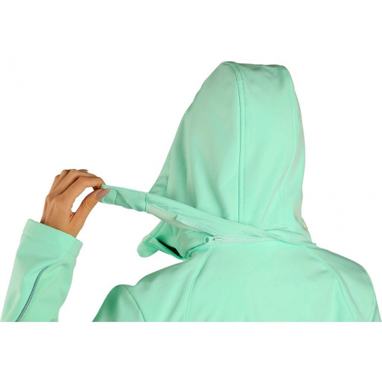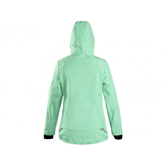 Dámská softshellová bunda s odepínací kapucí, odolná proti vodě a větru, zapínaní na zip, větrání v podpaží, náprsní kapsa na zip, boční kapsy na zip, rukávy s vnitřními manžetami, stahování v dolním okraji, reflexní doplňky, TPU membrána. Odolnost materiálu proti průniku vody 5 000 mm mimo oblast švů, paropropustnost 5 000 g/m2/24h.