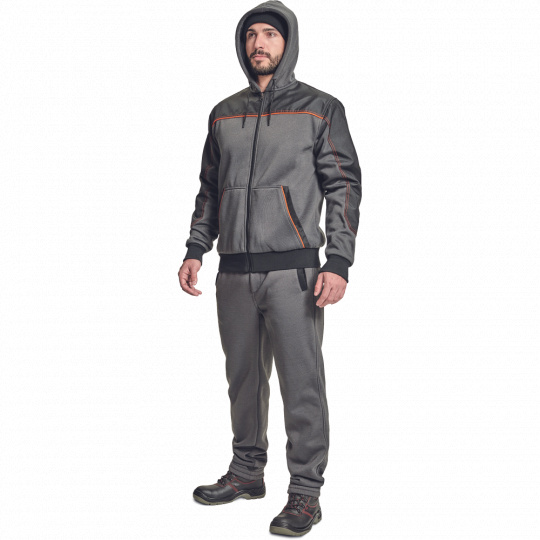 pánská celopropínací mikina na zip s kapucí; zesílená oblast ramen a loktů z materiálu Oxford; 2 přední klokaní kapsy; kontrastní paspulky; elastické žebrované náplety na rukávech a spodním obvodu; poutka na přichycení do Cremorne zimní bundy.