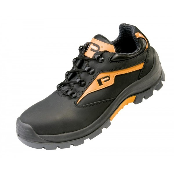 Bezpečnostní polobotka s textilním svrškem, kompozitní špicí, planžetou proti průpichu a nylonovou výztuží zapuštěnou v zadní části boty za účelem stabilizace postoje a kontroly správného ohybového bodu podešve. Bez kovových prvků.