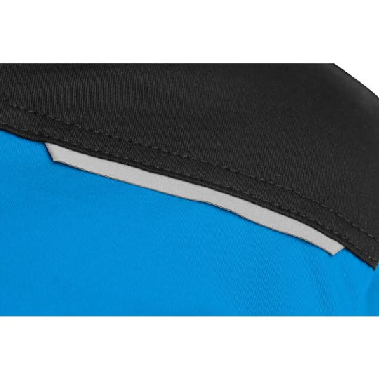 Pánská montérková blůza s kontrastními barevnými a reflexními doplňky. Konstrukce 4-way stretch umožňuje roztahování materiálu ve všech čtyřech směrech a tím i snadný a volný pohyb. Vysoké procento nylonu zaručuje schopnost rychlého schnutí. Blůza je na exponovaných místech vybavena doplňky z materiálu CORDURA, rukávy s nastavitelnou manžetou, náprsní kapsou na zip a dvěma skrytými náprsními kapsami na zip, dvěma bočními kapsami na zip, tužkovou kapsičkou na levém rukávu, ventilací v zadní části a bočních částech pod rukávy, vnitřní kapsou na zip a síťovou prodyšnou podšívkou. Doporučené použití: strojírenství, stavebnictví, lehký průmysl, automobilový průmysl, logistika, skladování, spedice, autoservisy, údržba, montáže, zemědělství, zahrada, hobby a volný čas.
