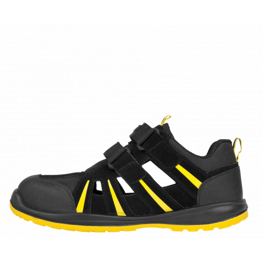 Bezpečnostní nonmetalický sandál je vyroben z kombinace štípené usně a textilie MESH. Uzavírání obuvi je rychlé a snadné, neboť je zde použit suchý zip. Nedílnou součástí této obuvi je taktéž kompozitní tužinka, která ochrání prsty na nohou v krizových situacích. Pohodlí při nošení zajišťuje odpružená pata.