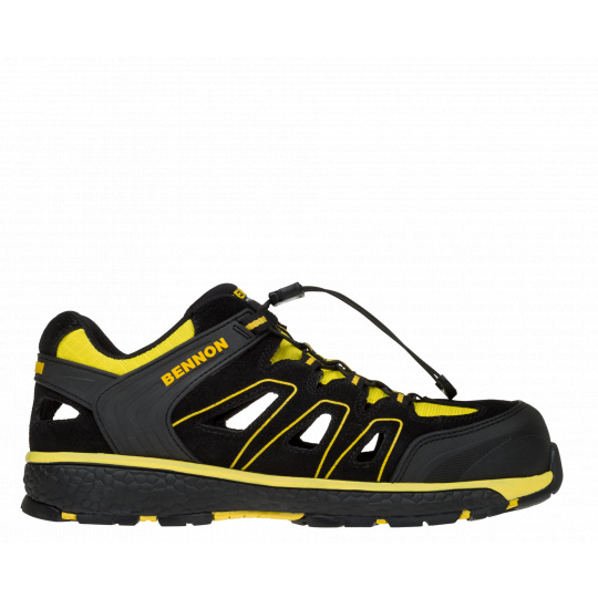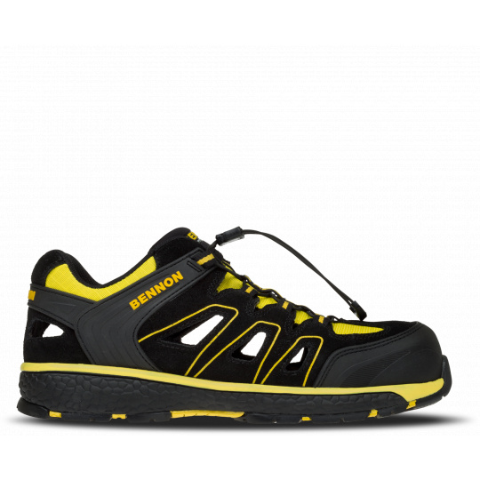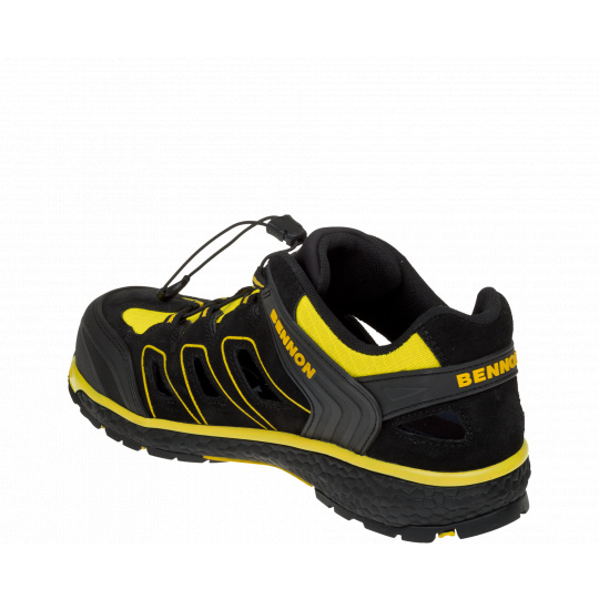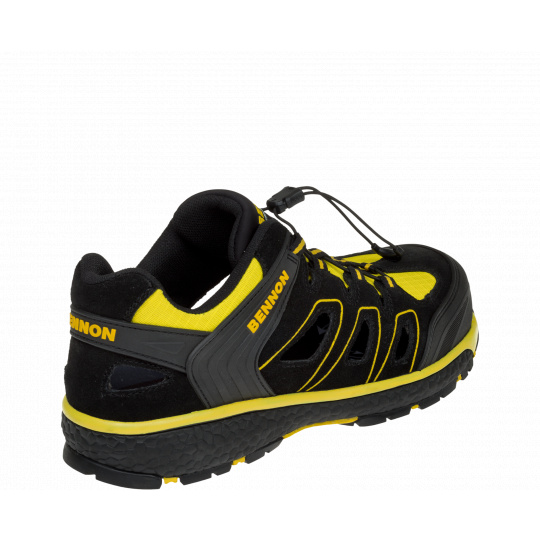 Pracovný sandál BENNON BOMBIS s kompozitný špicou: Vzdušný bezpečnostné sandále s kompozitný ochrannou tužinkou v špici, s gumovým chránočem špice aj päty, na podošve EVA / guma. Ochranná špica zaisťuje ochranu proti stlačeniu 200 J a nárazu 15 kN, podľa normy EN ISO 20345 S1.