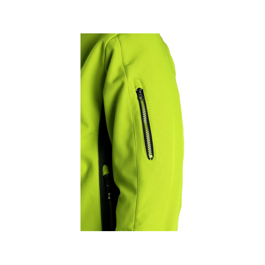 Pánská, softshell bunda, odolná proti vodě a větru, odepínací kapuce, stahování v dolním okraji, rukávy zakončeny gumičkou, černé reflexní výpustky, fleecový límec i vnitřní strana bundy, TPU membrána, odolnost materiálu proti průniku vody (mimo oblast švů a mimo materiálu kolem kapes) 10 000 mm, paropropustnost 3 000 g/m2/24 hod, na levém rukávu kapsička na zip, 2 spodní kapsy na zip, jedna náprsní kapsa.